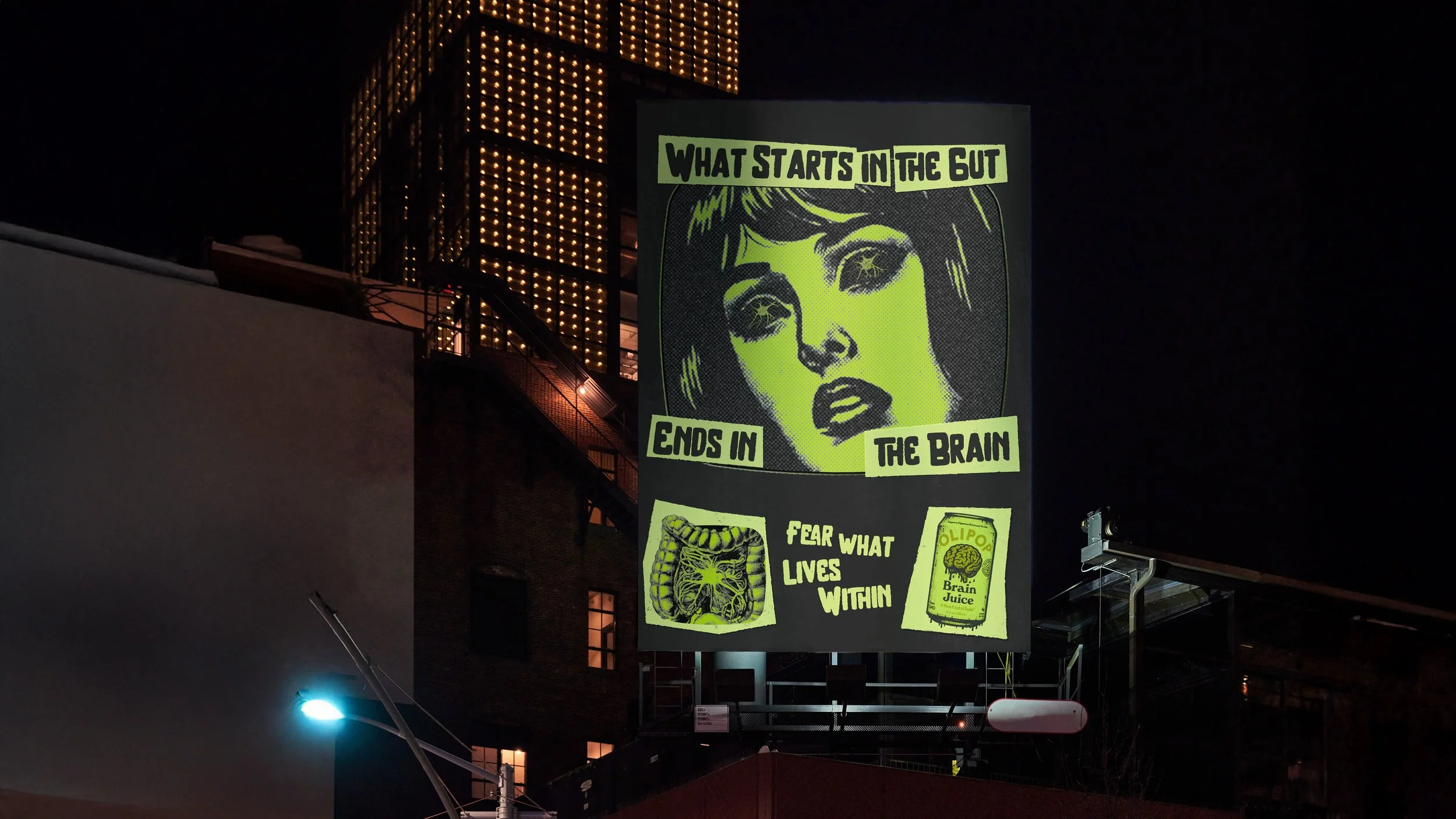 Everyone preaches about gut health, but few people know that their microbiome is the final barrier protecting the brain from a hoard of bad bacteria. To spotlight the real stomach scaries of poor gut health, this Halloween Olipop is casting bad gut bacteria as the frenzied, flesh-eating villain of its own horror film.