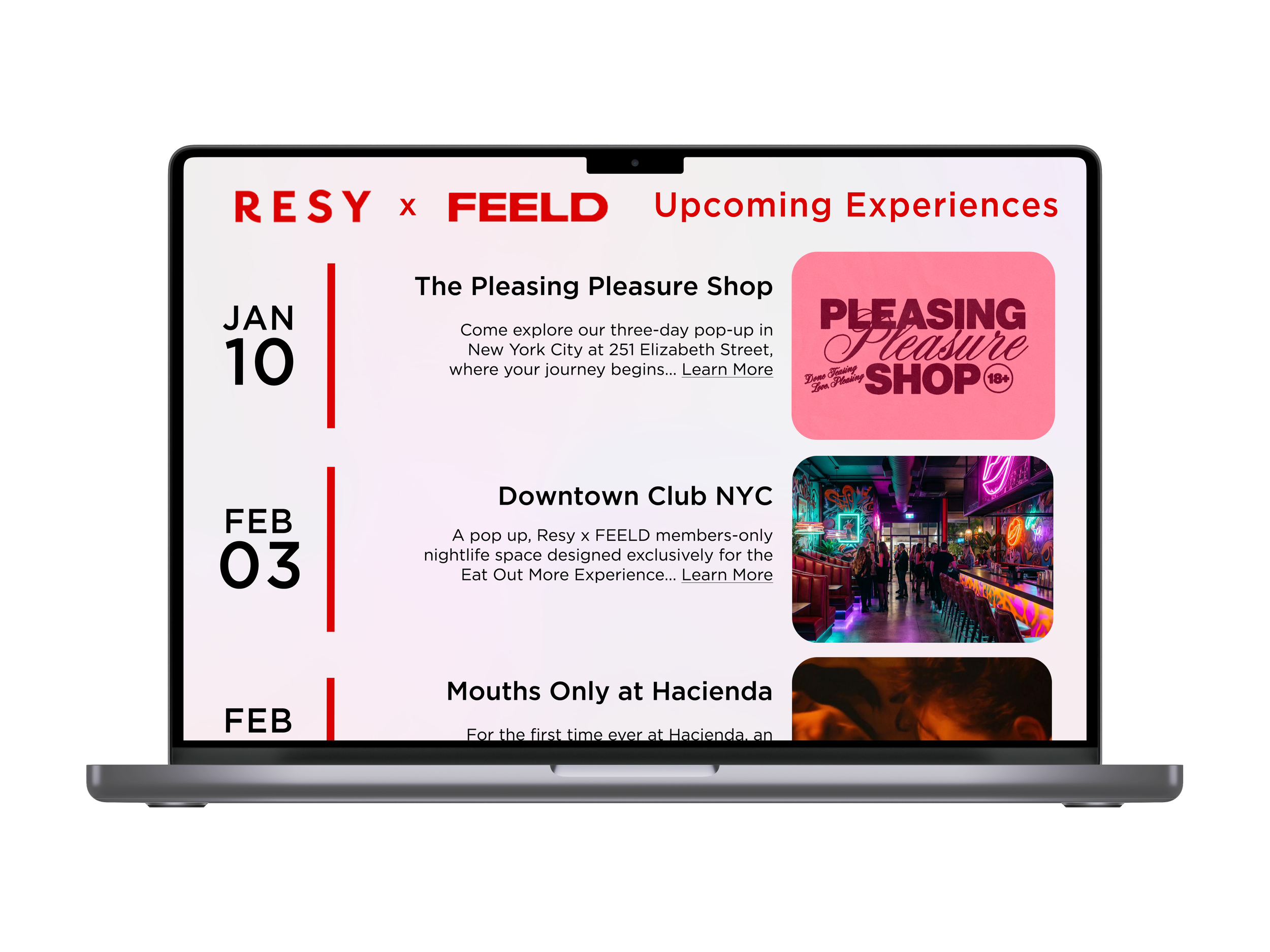 With Resy’s Eat Out More experience on FEELD, we’ll provide an array of cuisines.